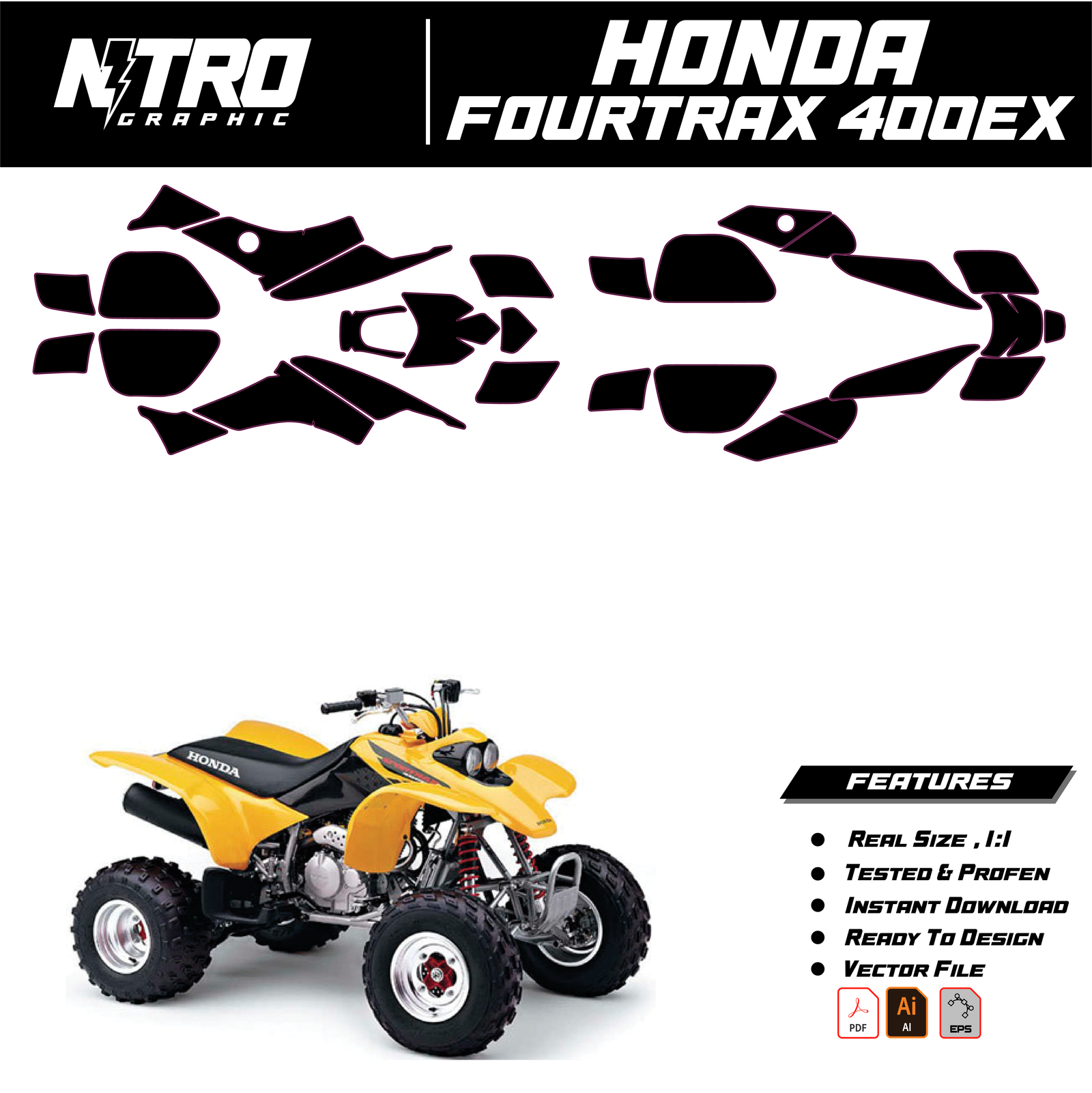 Our FOURTRAX 400EX QUADS ATV Templates are manufactured to be easily placed on your vehicle and make it 100% unique. Our Vector Template is available in digital format. It is designed to be simply used with your graphic design software (Illustrator, Photoshop, Corel Draw, etc.).
