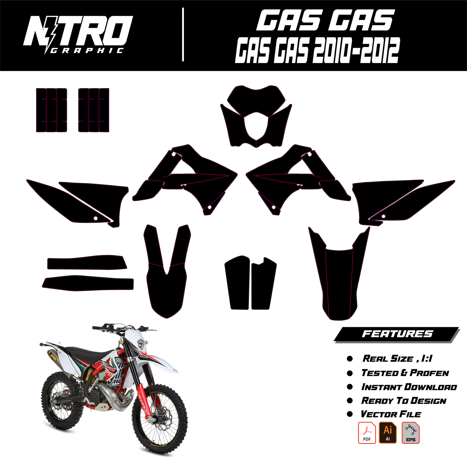 All the MX template from Nitro graphic are designed to provide maximum coverage with effortless application. Our designers have thoroughly tested and hand-crafted this template, guaranteeing a perfect fit every time.