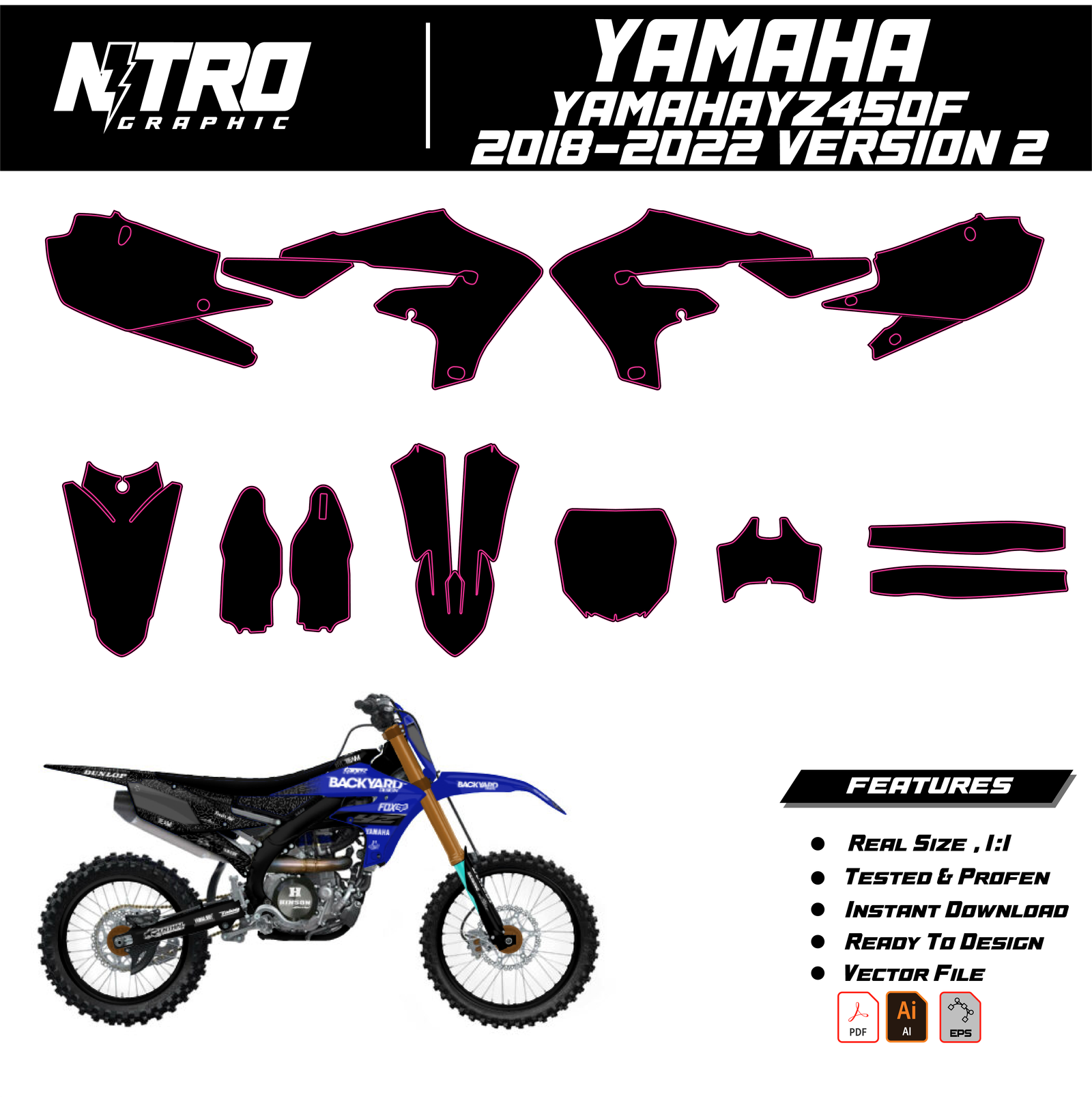 Our Yamaha YZ450F 2018-2022 Templates are manufactured to be easily placed on your vehicle and make it 100% unique. Our Vector Template is available in digital format. It is designed to be simply used with your graphic design software (Illustrator, Photoshop, Corel Draw, etc.).