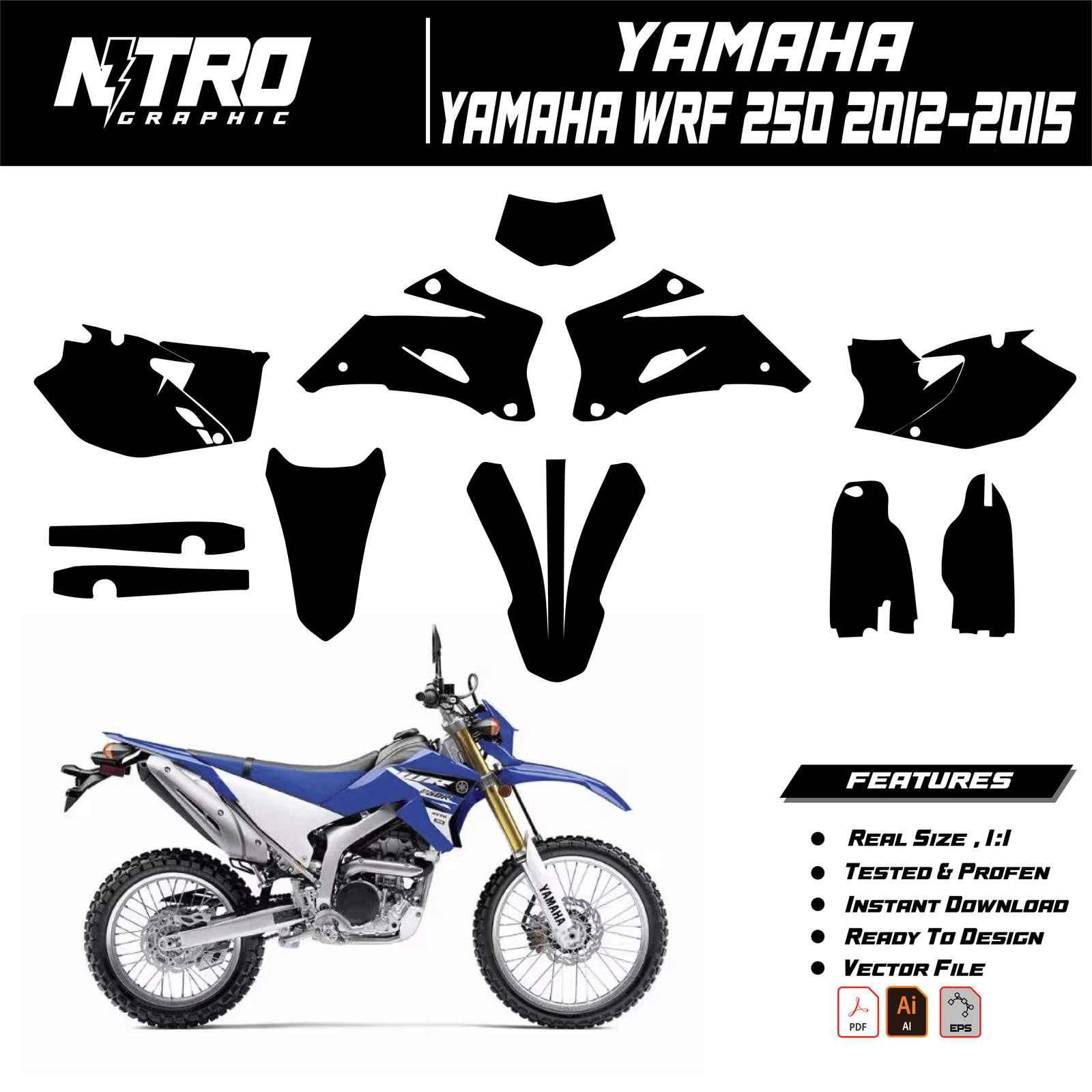 Our YAMAHA YZF 250-450 2006 2007 2008 2009 Templates are manufactured to be easily placed on your vehicle and make it 100% unique. Our Vector Template is available in digital format. It is designed to be simply used with your graphic design software (Illustrator, Photoshop, Corel Draw, etc.).